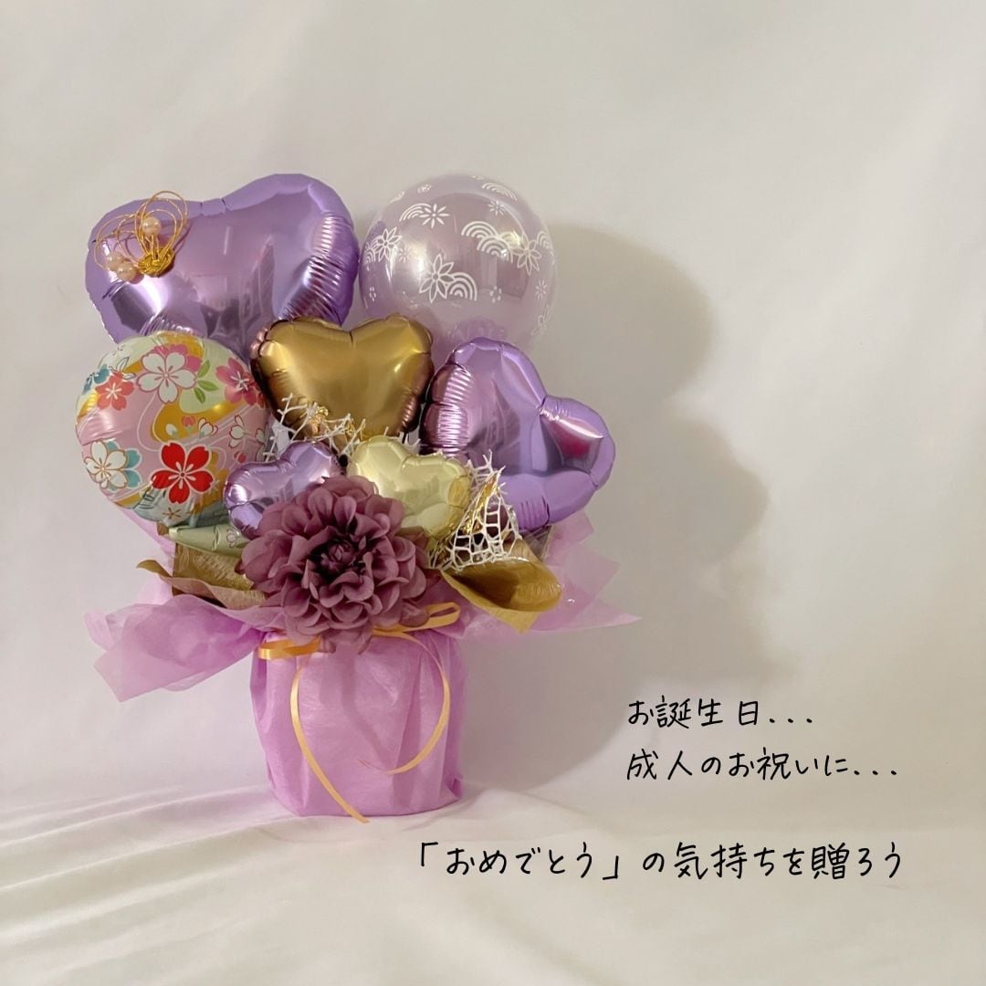 【バルーンアレンジメント】和風/お誕生日/和柄/ラベンダー/結婚祝い